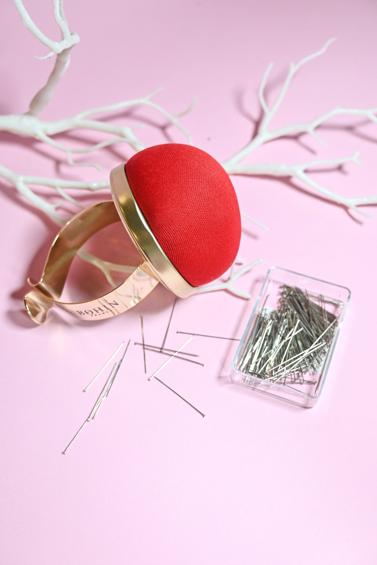 Kupolo formos smeigtukų pagalvėlė leidžia įsmeigti smeigtukus ir adatas. Apyrankė lengvai tvirtinasi ant riešo, tad reikalingos adatėlės ir smeigtukai – bus po ranka.