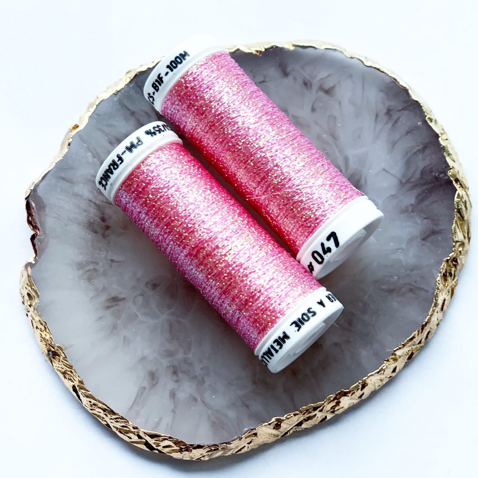 Au Ver a Soie metalizuoti siūlai 100m (rožinė) 047