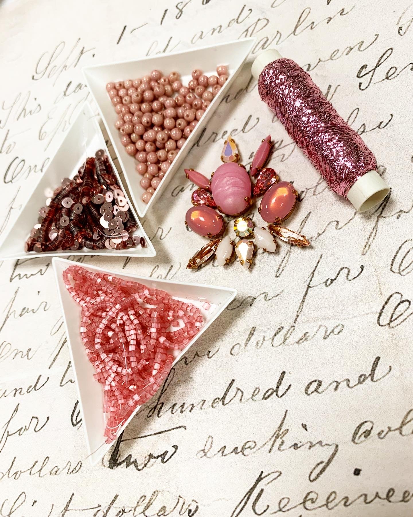 Mes taip pat parinkome derančias siuvinėjimo priemones, vintažinį biserį, šilkinius ir metalizuotus siūlus, karoliukus bei Miyuki ir Langlois Martin produkciją