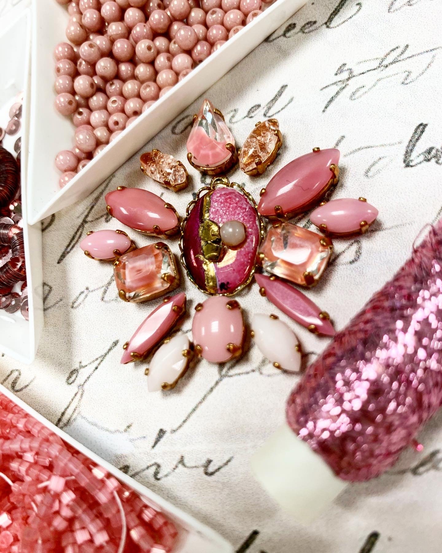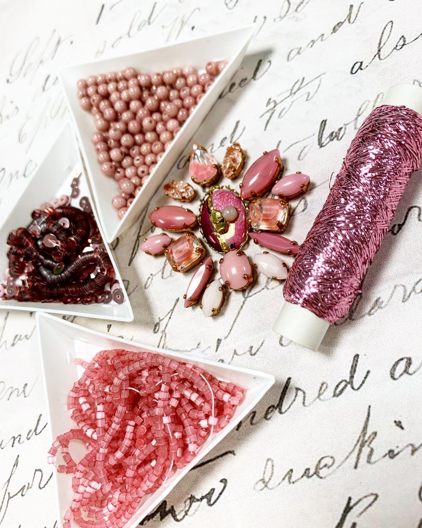 Mes taip pat parinkome derančias siuvinėjimo priemones, vintažinį biserį, šilkinius ir metalizuotus siūlus, karoliukus bei Miyuki ir Langlois Martin produkciją